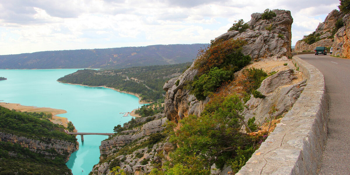 Шоссе проходит по полям с колосящейся пшеницей, мимо водохранилищ и озер, а также через деревушки с классическими каменными домиками.